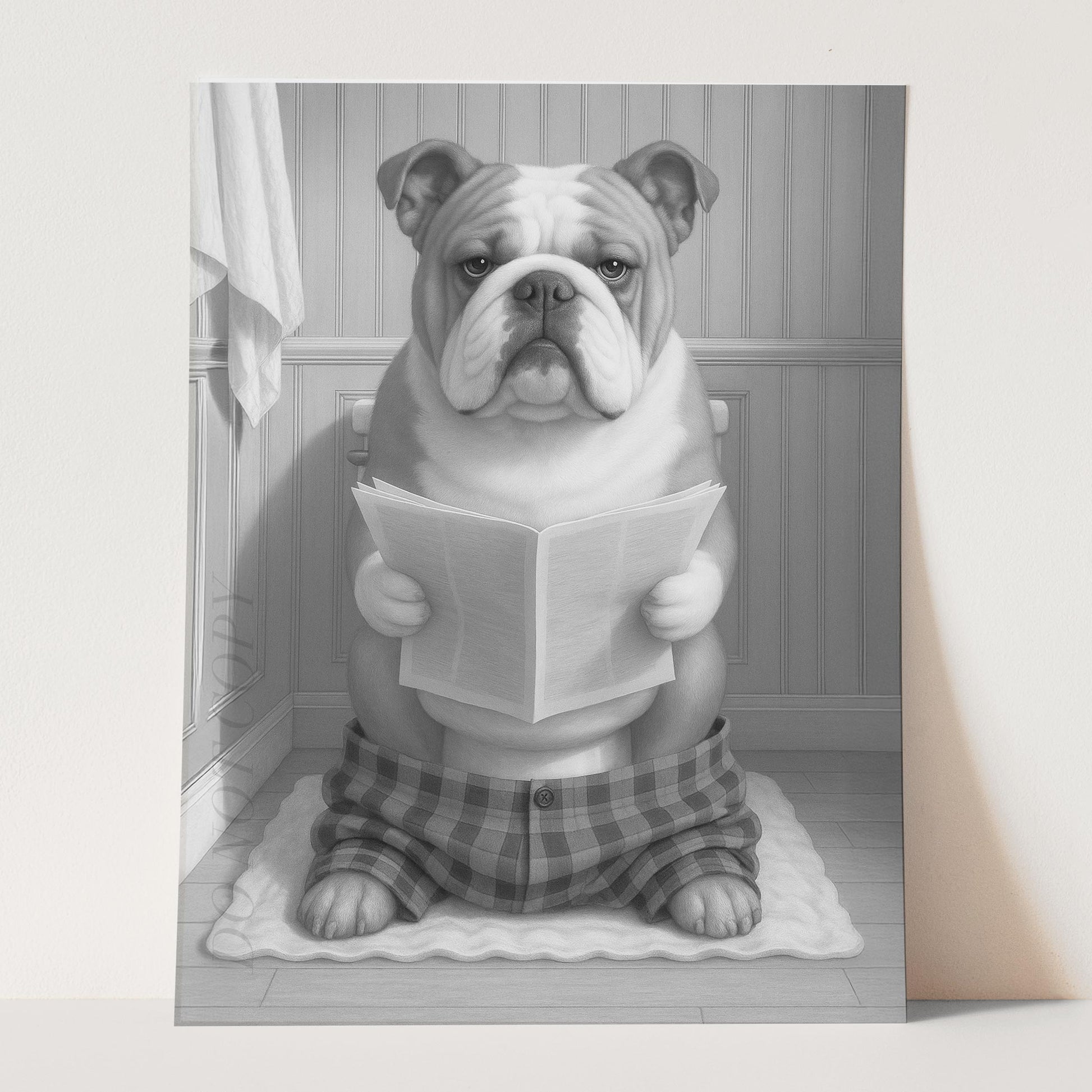 Bulldog Reading The Newspaper On The Toilet