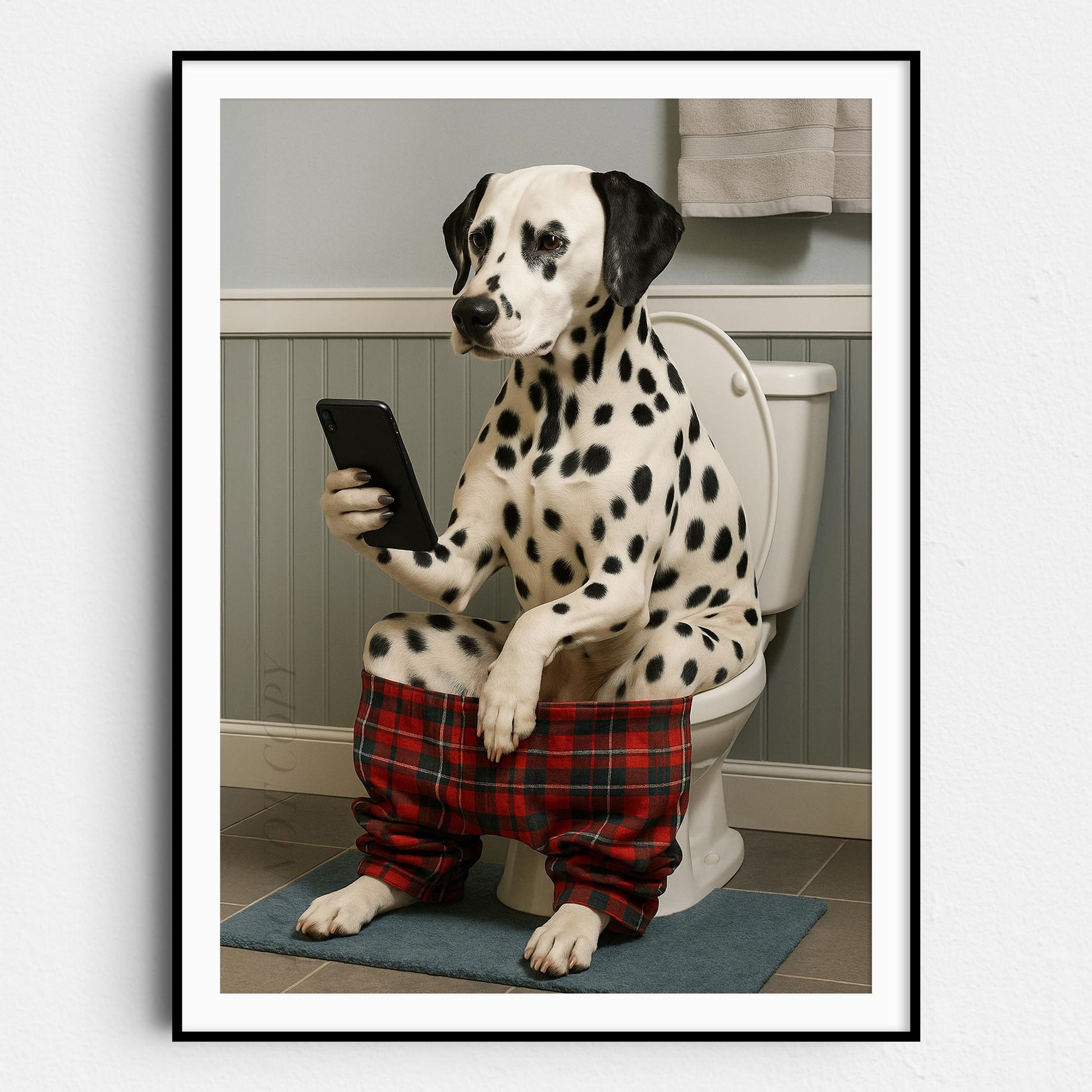 Dalmatian On The Phone On The Toilet