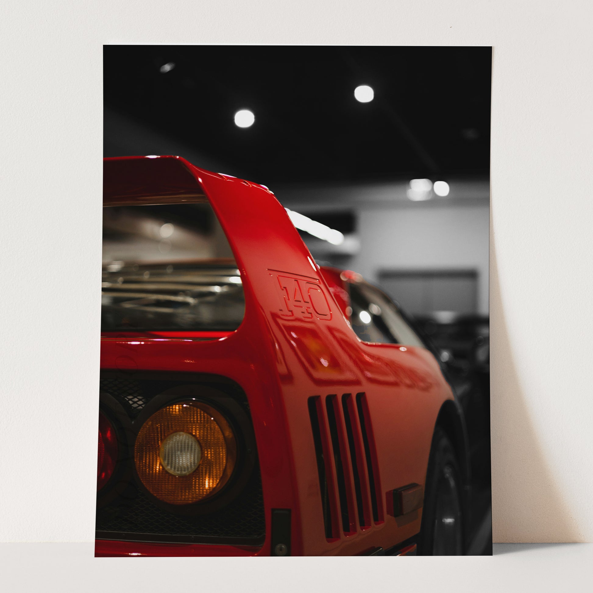 Red Ferrari F40 Rear View on Black & White
