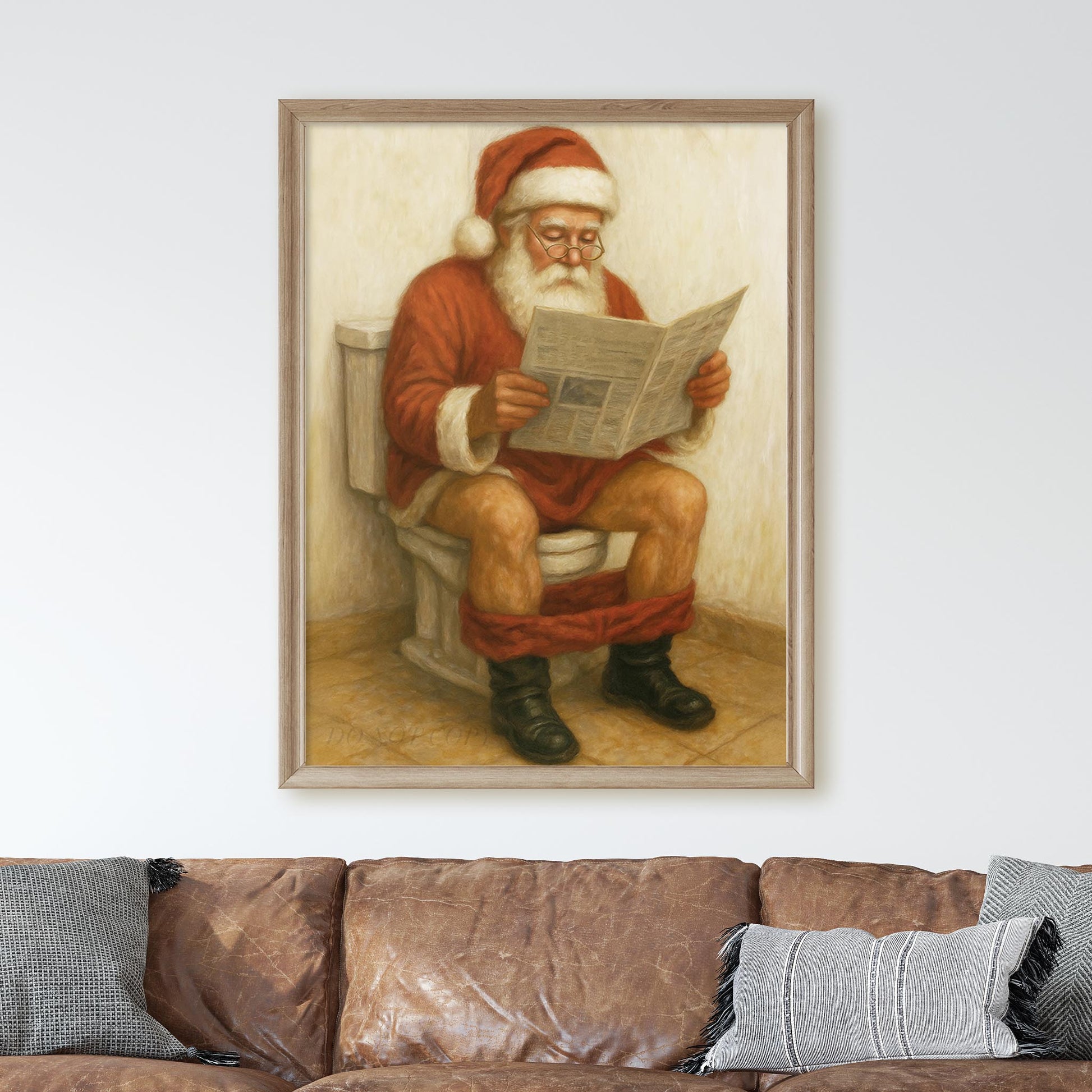 Santa Claus Reading The Newspaper On The Toilet