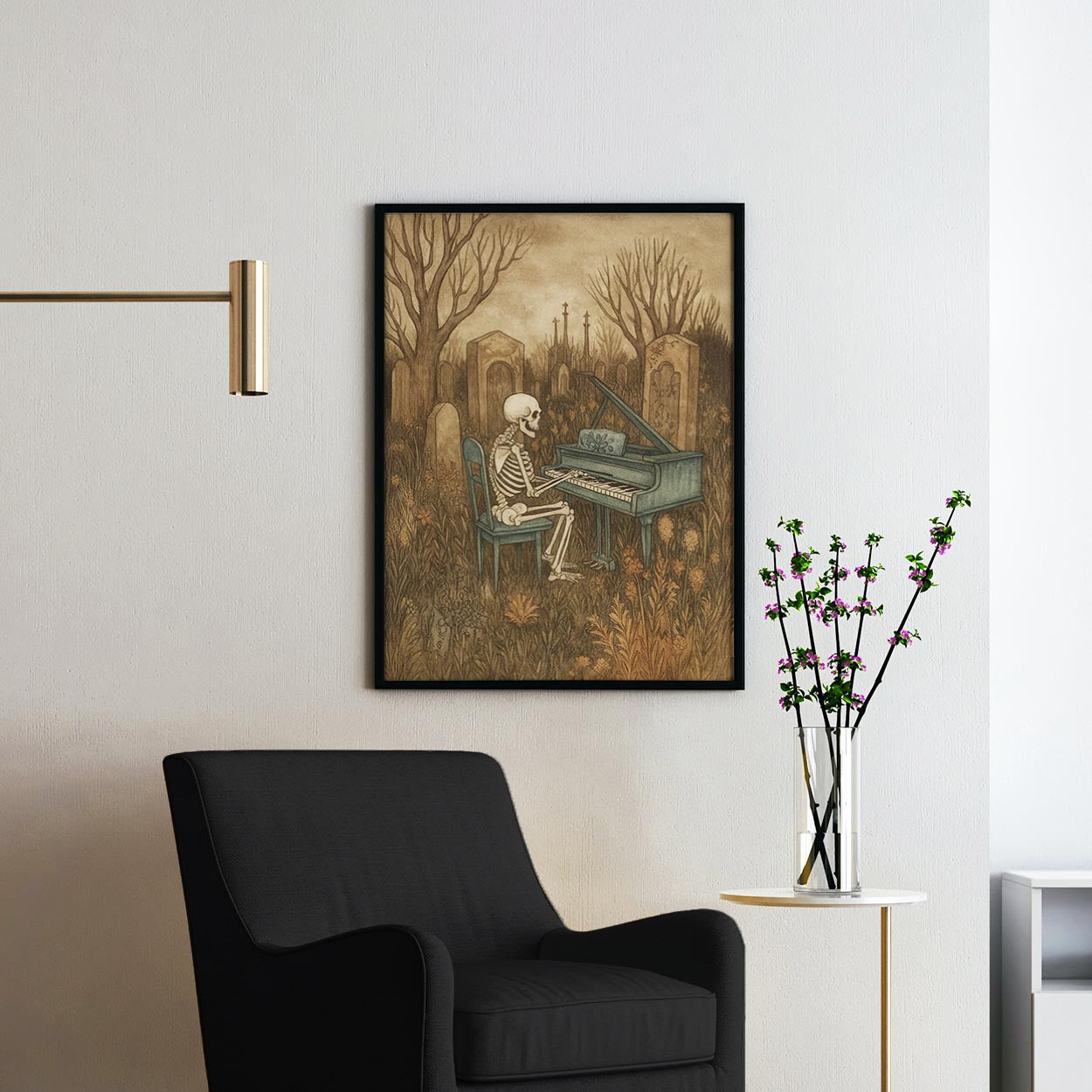 Skeleton Playing The Piano In A Graveyard
